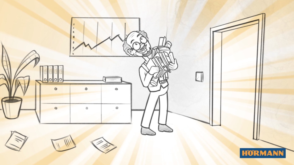 Realisierung & Produktion Cartoon-Movie-Serie für Hörmann AG. Diese Reihe wurde mit von Hand gestalteten Charakteren umgesetzt. Back to The Roots.